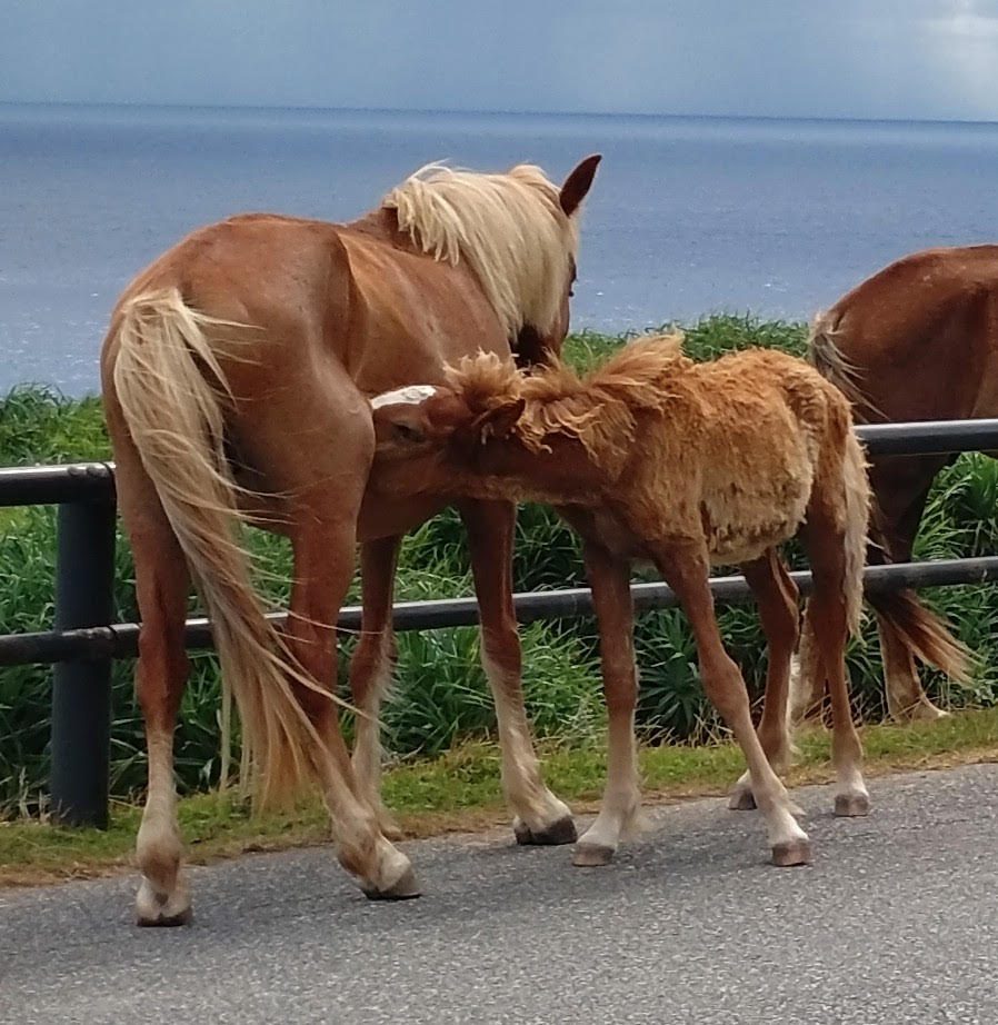 仕事で与那国島に行った際、初めての与那国島ということもあり、与那国馬を見に行きました。沢山の馬の中に、親子の馬も居ました。子どもはいつでもお母さんが好きなんだなぁと、愛を感じました。