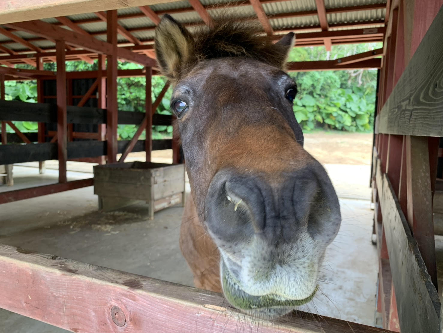 母の施設近くの散歩コースにいる馬です。与那国馬とのミックスらしいです