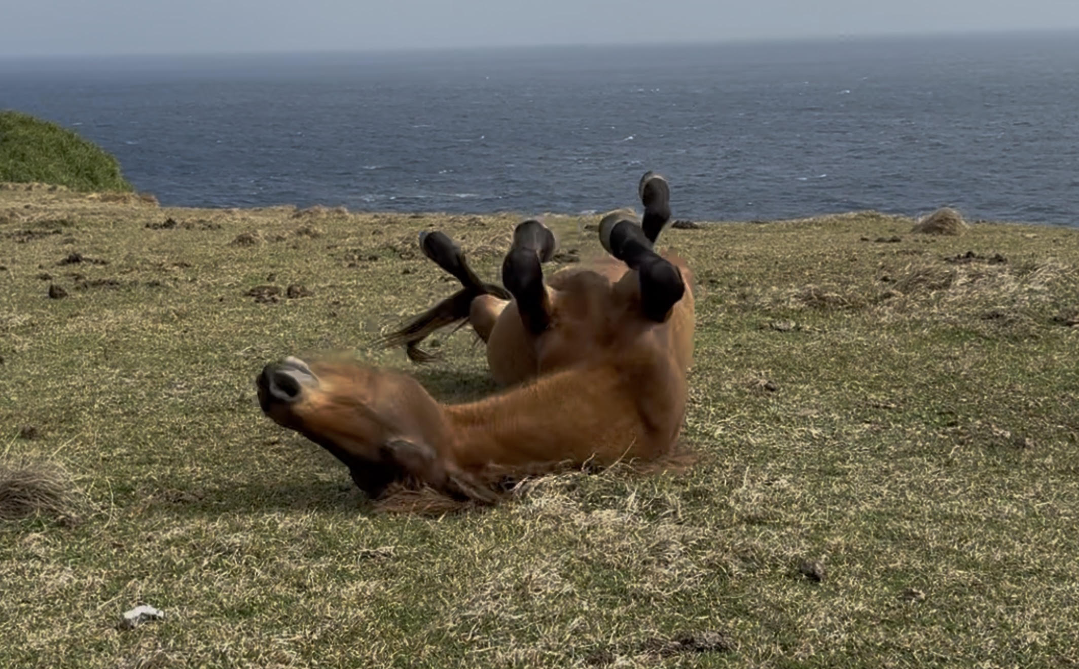 麗らかな陽気漂う芝生が気持ちいいのか、与那国馬がコロコロしていました。しばらく眺めているとコチラに気づき、馬糞をまき散らしながら去っていきました。生き物って素晴らしいですね♪